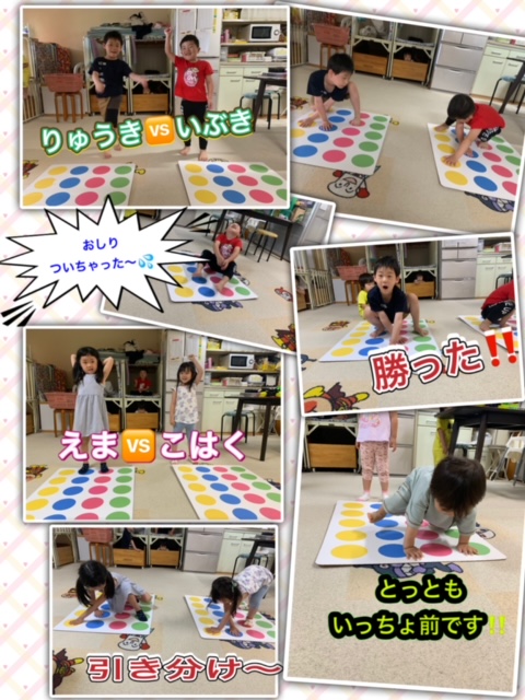 そう、昔からある「ツイスターゲーム」です🟢🟣🟠🔴