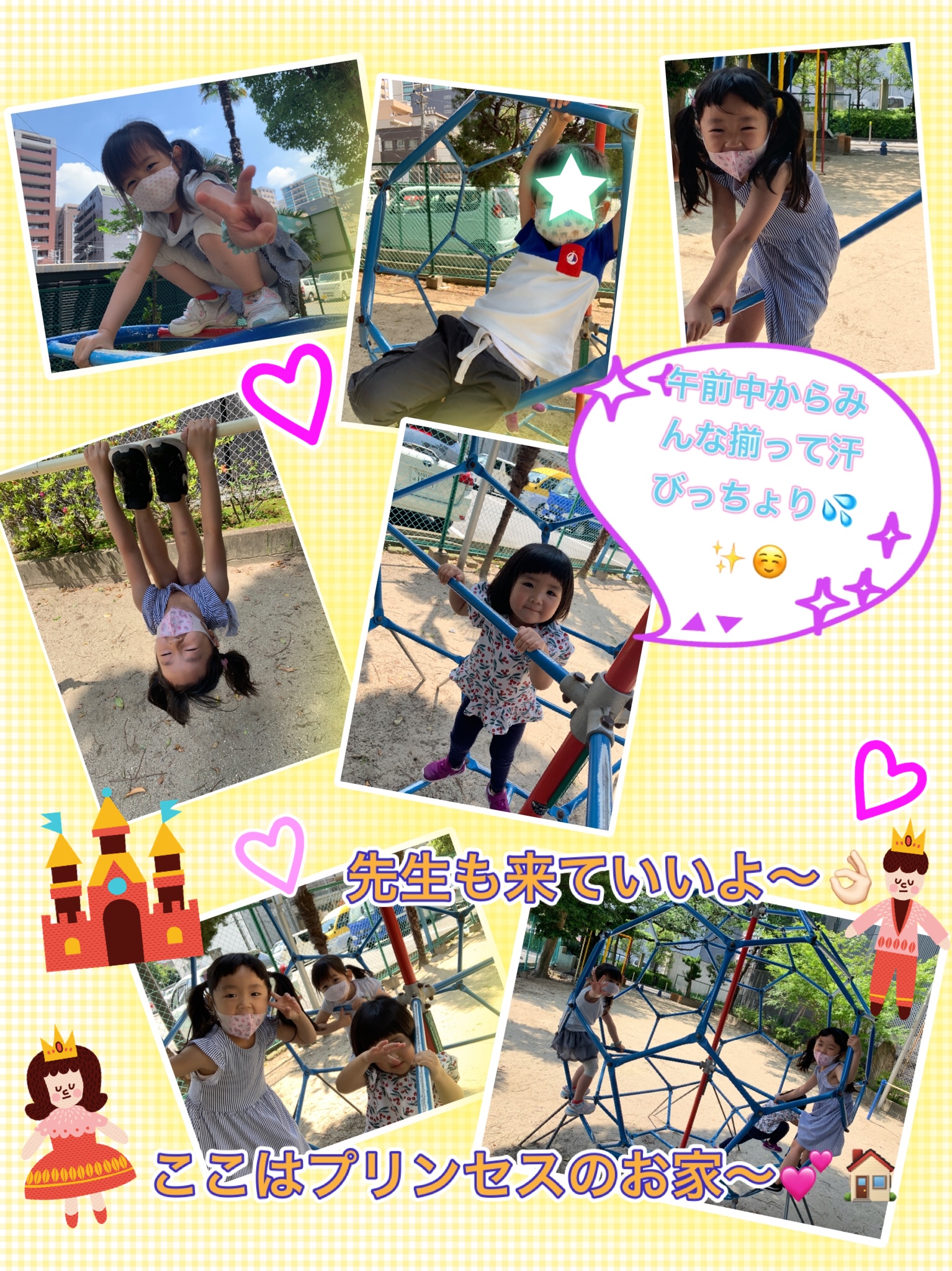 Untitled Post 2021.10.132021.05.31 午前中のおさんぽでしょうちゃん公園に行くと ジャングルジムがプリンセスのおうちに 大変したようです💕✨🏠😘 みんなで「ここはベットね😊」 「ここはお風呂🛀にしよ〜」と 女の子みんなで相談して間取りを決めていました🤣✨ お昼寝あとの芝生公園でのお散歩は 久しぶりに大人数そろってになりみんな嬉しそう😘 ながーいトンネル遊びもよーいドンも たくさん走り回って帰りました👌🏻😇