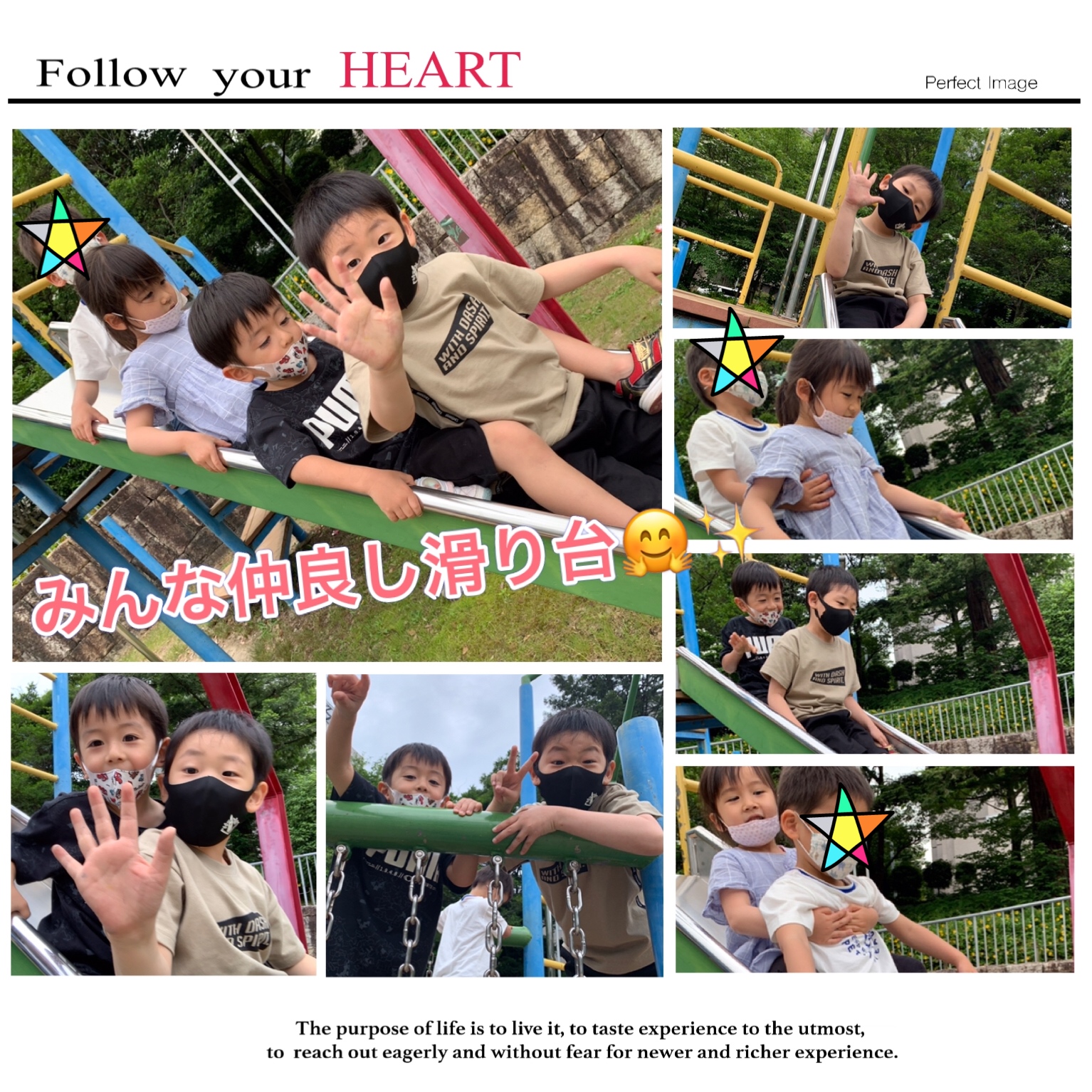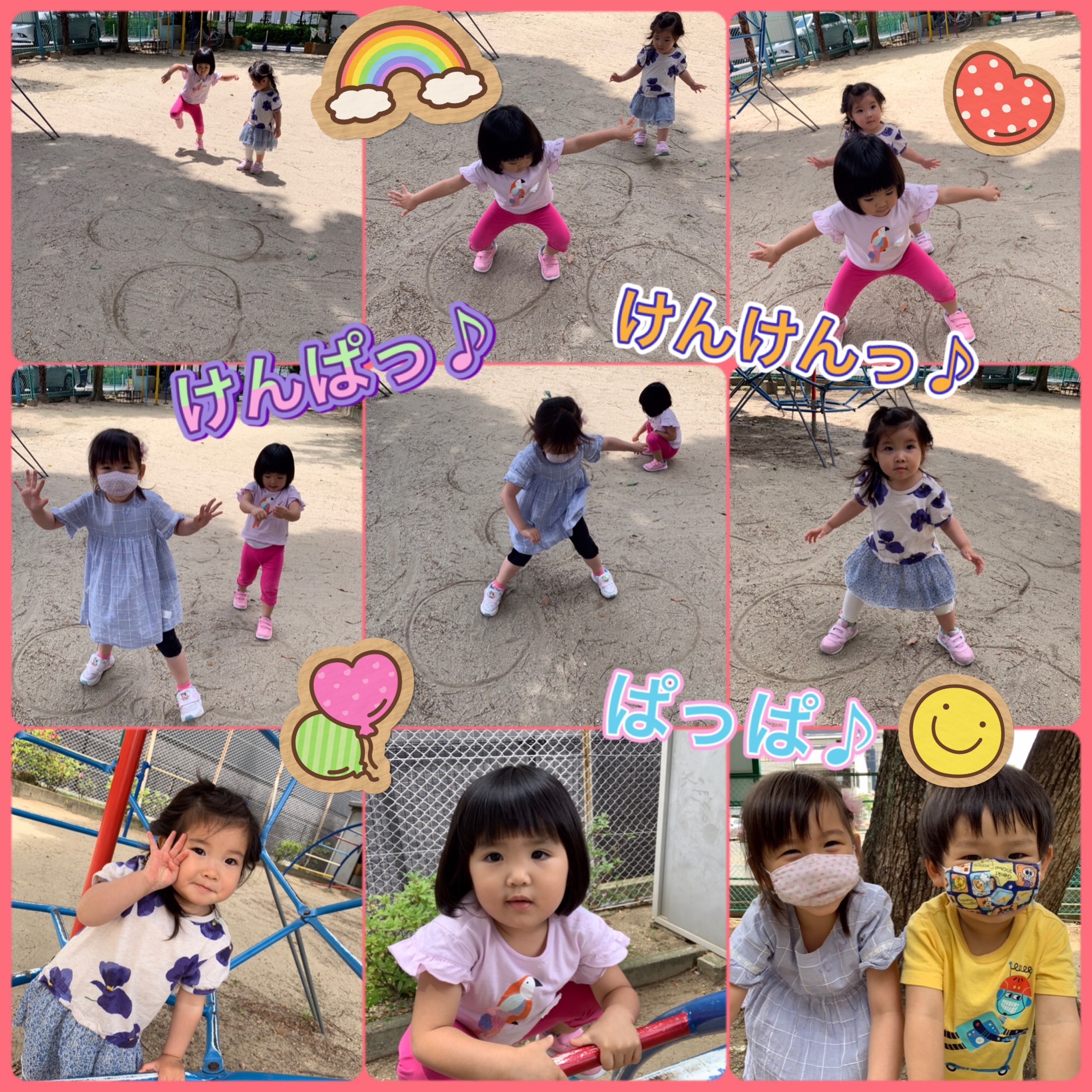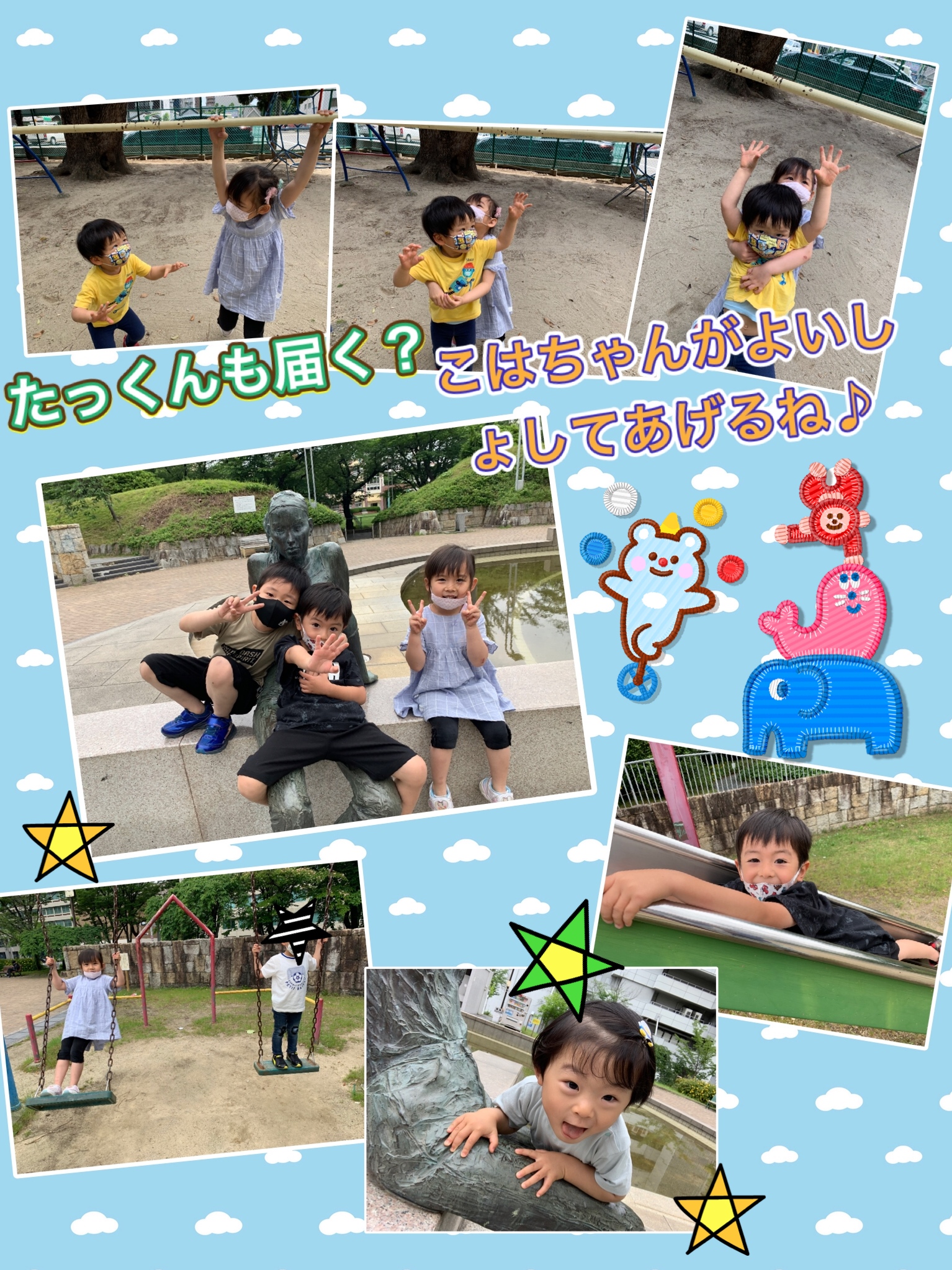 Untitled Post 2021.10.132021.05.25 午前中のおさんぽは公園でみんなで一緒に けんぱっを丸で作ってけんけんぱ遊び🥰✨ 鉄棒遊びはいつもお姉ちゃん達が上手に ぶら下がりをしているのを見ているたっくんを 優しいこはちゃんがよいっしょっとお姉ちゃんの一面を 見せてくれました〜😊💕 午後からのオアシス公園ではみんな滑り台のエンドレスで 滑っては登って登ってを繰り返していました🤣🤣