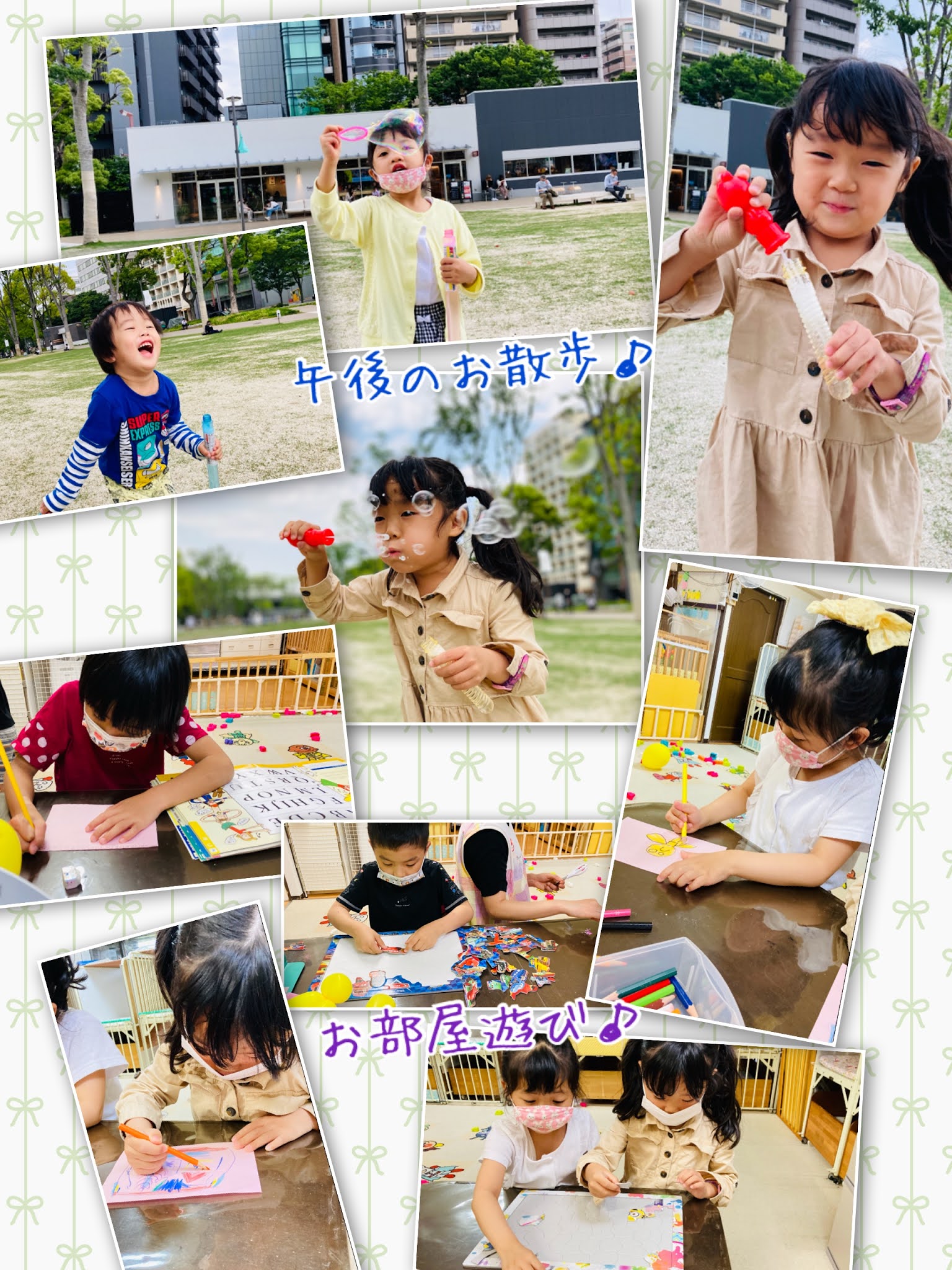 風がほどよくあったのでシャボン玉たくさんできて、できてすぐ割るって遊びをしていました😅💦