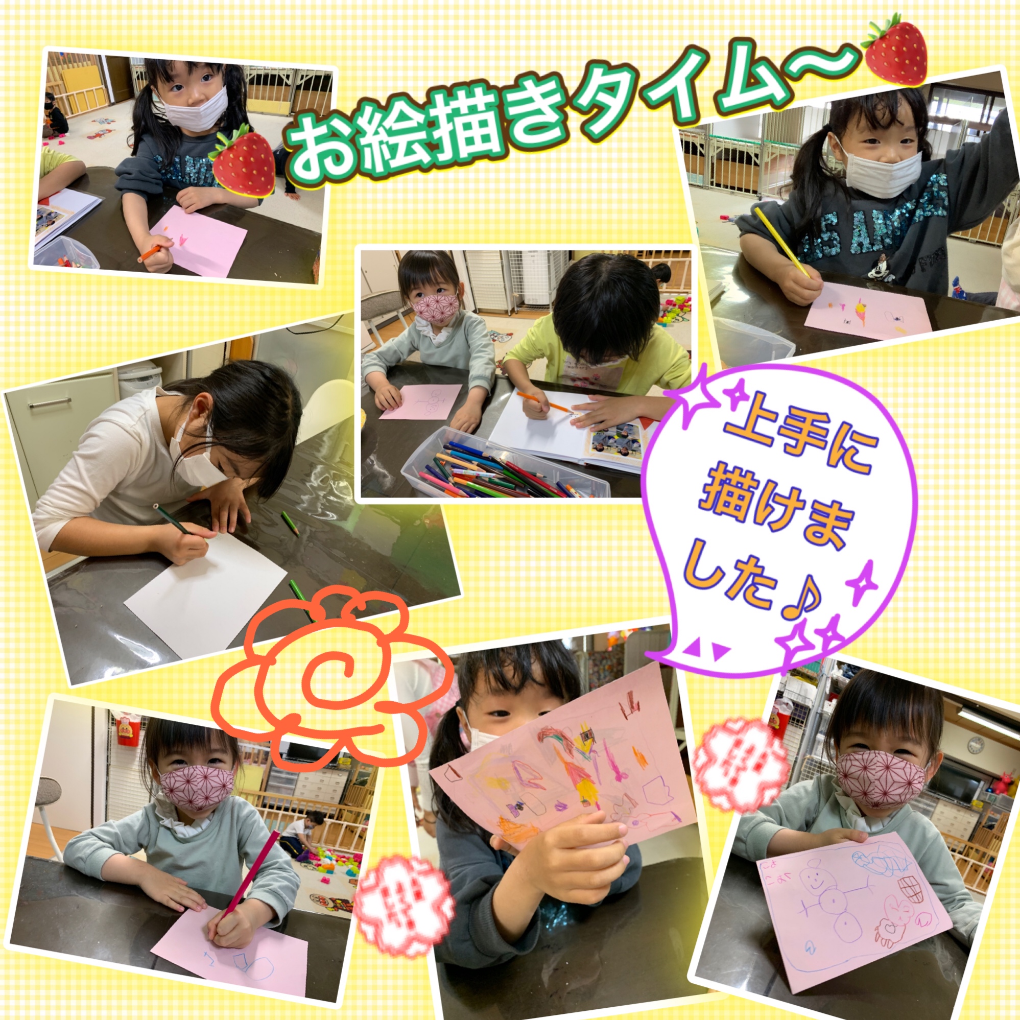 Untitled Post 2021.10.132021.04.29 午前中は女の子で揃ってお絵描きタイム〜♪ 「みんなの好きな果物はなにかな?😊」 「いちご🍓とスイカ🍉と〜」みんなの好きな果物を 先生も加わって一緒にお絵描きしました😇 お外遊びはちょこっとずつでしたがみんな順番こに👍🏻 階段を使ってグリコ遊び〜♪😁 1番最初にゴールしたのは勝っても負けても 突き進み続けたうるるんでした😅🤣 男の子達はオアシスのガチャガチャの森をちらりと 覗きに行く程度に探索へ🍀☺️ みんなの好きなキャラクターを順番に教えてくれました😝