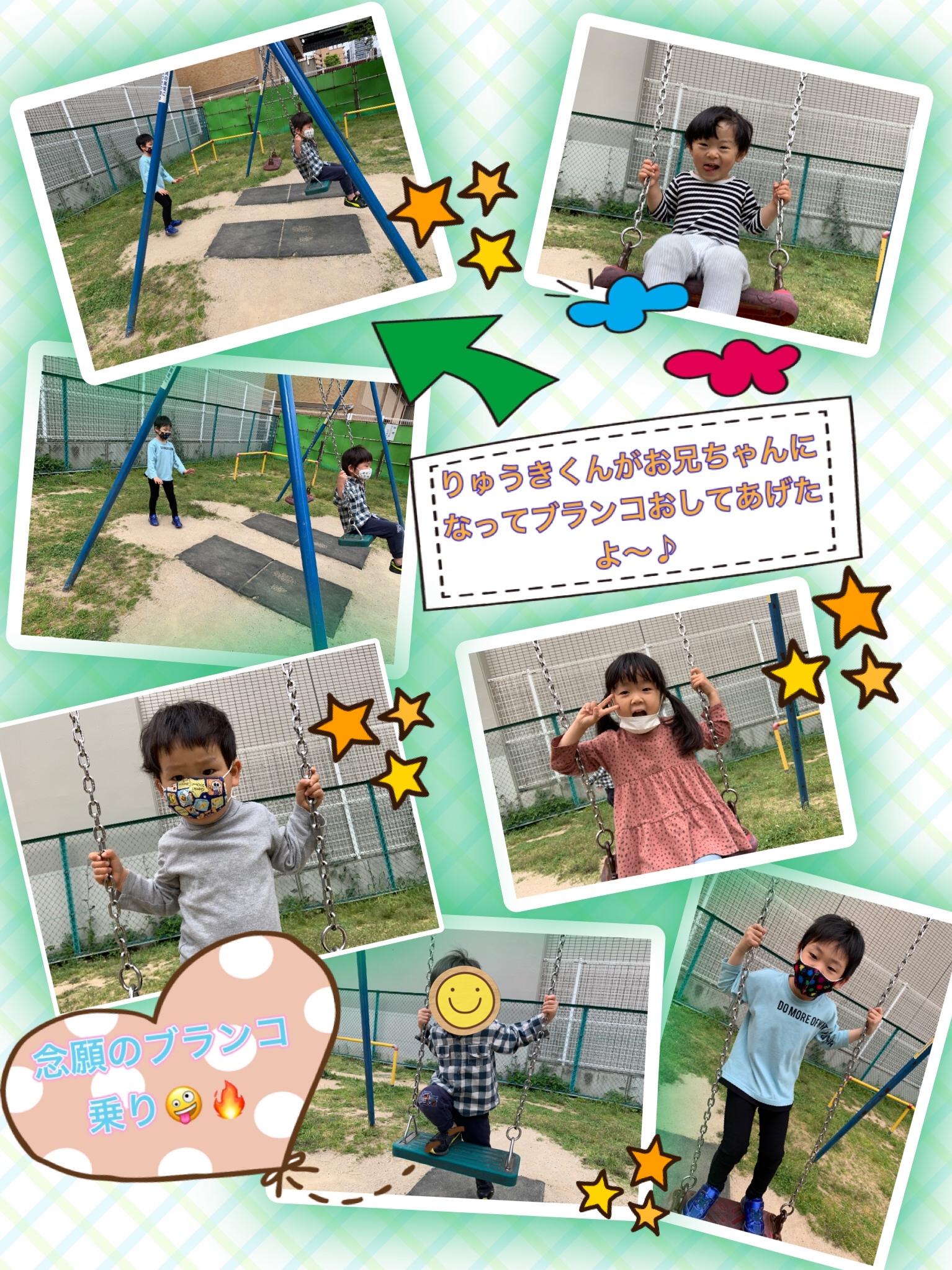 りゅうきくんが年下組さんたちのブランコをおしてあげる