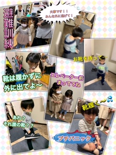 なので、今日は靴を履かずに持って外に素早く出る訓練でした。