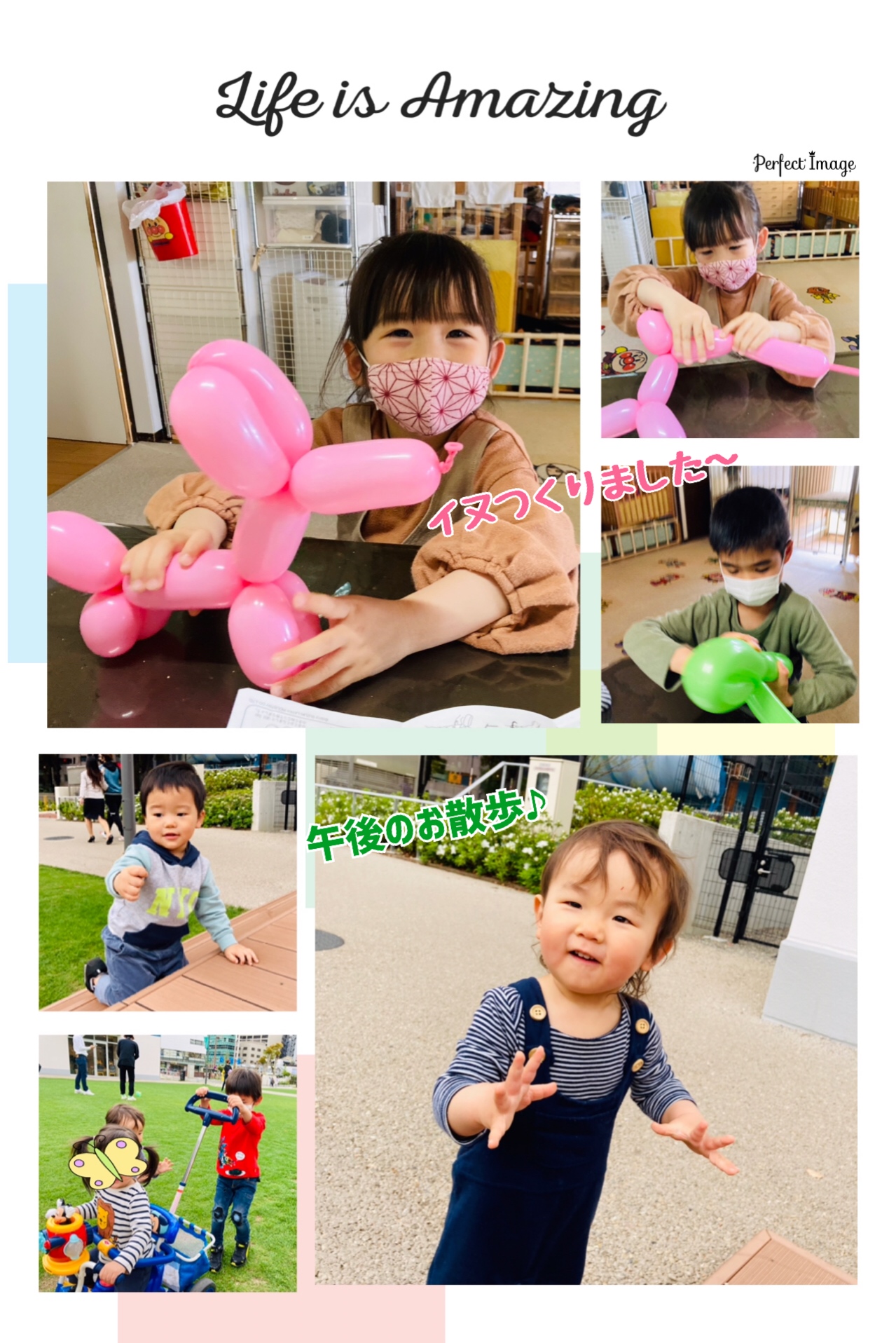 今アップル園内で流行ってるバルーンアートでイヌさんウサギさんつくりました🐶🐰