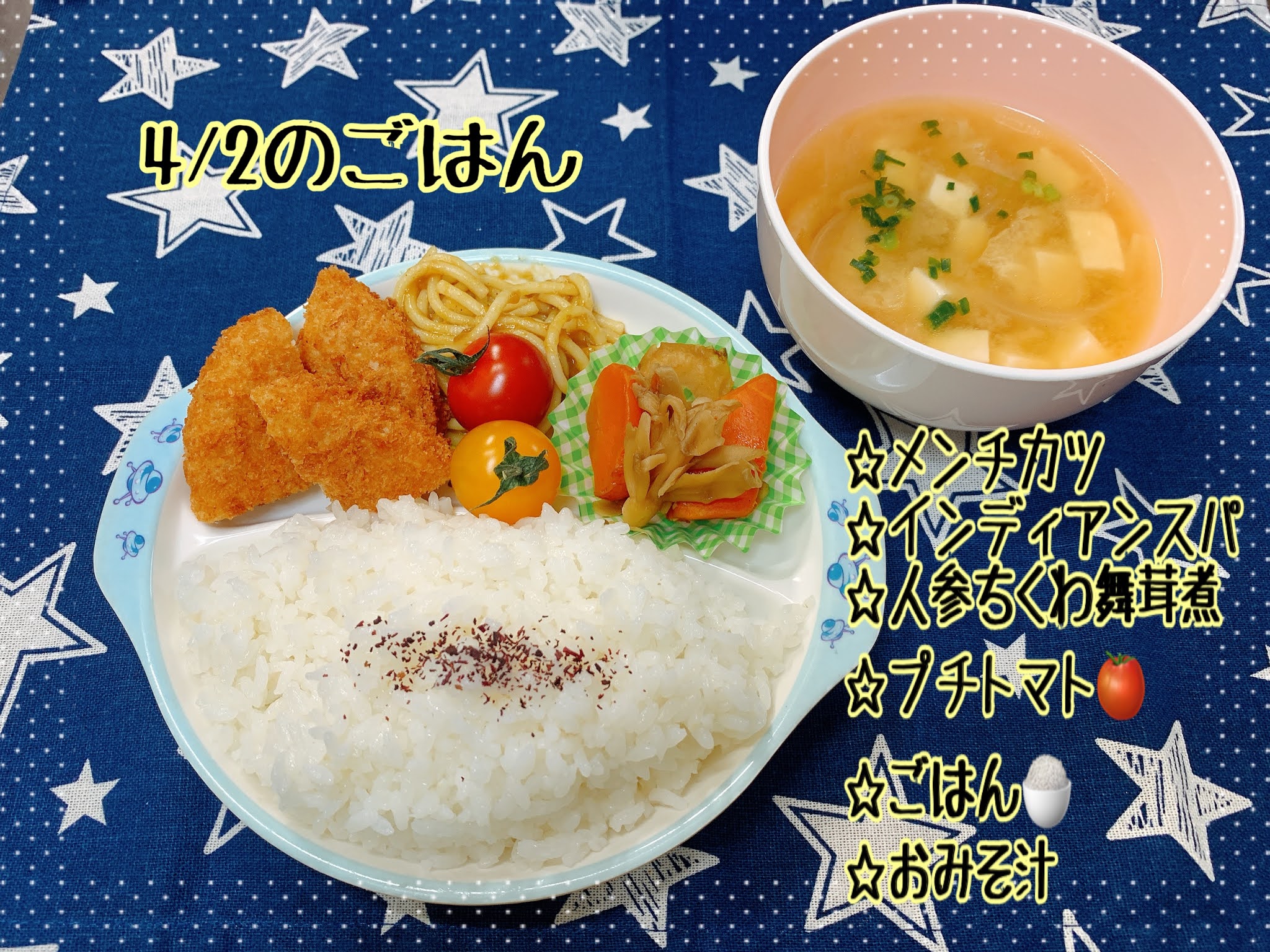 遅くなりましたが4/2のごはんです😢