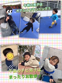 Untitled Post 2021.10.132021.03.04 午前はお日様が出てるのに雨が降ってくる!という不安定な天気だったので、 地下街を通ってオアシスまで歩けるお友達でお散歩♪ 最近、女子な小さな女の子達。 さすがに女の子4人はおしゃべがすごーーーい(笑) 小さくても女子!を発揮したました😊 午後は雨もやんだので、ちびーず達でぐるり散歩♪ 上着が要らなくなってきて、まったりお散歩が気持ちよかったね!