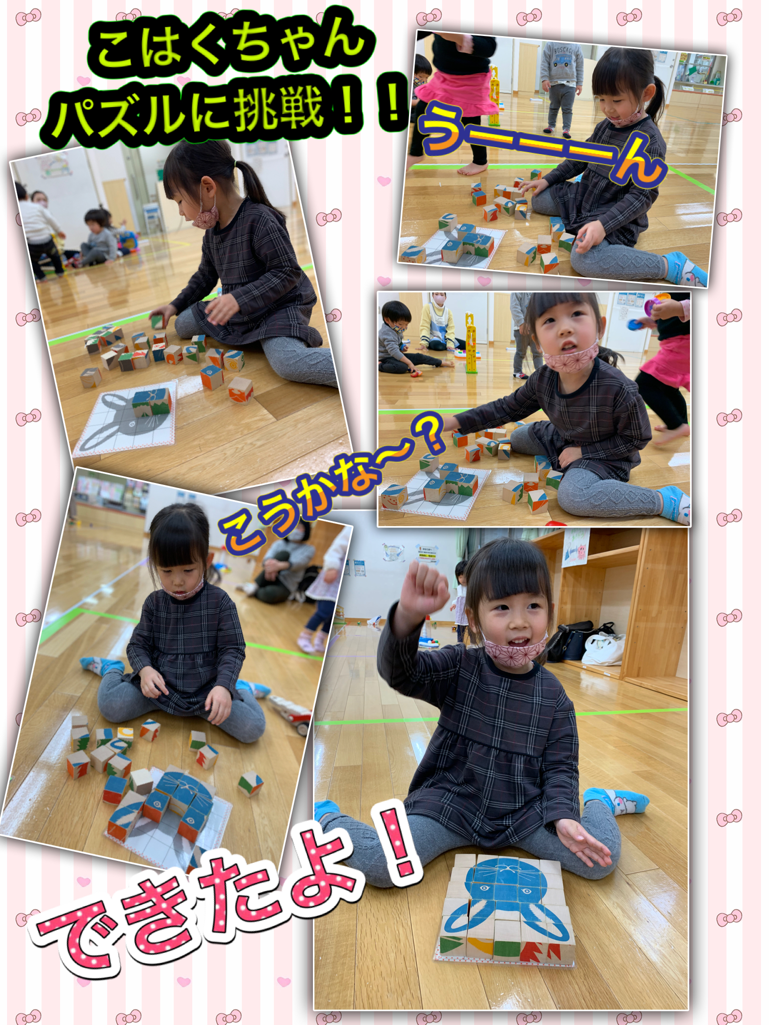児童館で遊んできました😊 2021.10.132021.03.02 さてさてそれでは児童館の様子です〜😊好きなおもちゃごとに、なかよしペアができてましたね〜😊ちびーず達もお友達と一緒に遊ぶ…ってことができるようになってきた証拠だね!児童館でも、こはくちゃんが上手にみんなをリード!ちびちゃん達は、お姉ちゃんと同じように遊べるのが嬉しかったようでご機嫌さんでした😊そして、こはくちゃんは、積み木のパズルを1人で奮闘‼️見事に完成させてました〜!やったね✌️こはちゃん❣️