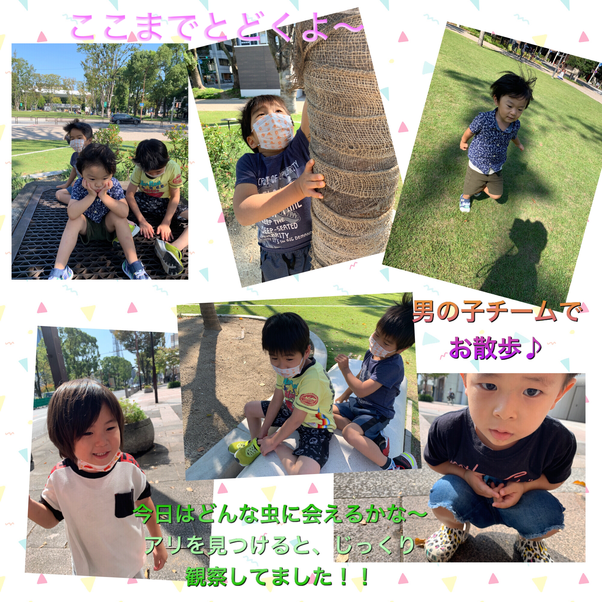 Untitled Post 2021.10.132021.09.23 はるちゃん、けんしょう兄弟♪ けんしょうくんは、優しいお姉ちゃんはるちゃんにいつも守られて たくさん遊んでもらっています♪ けんちゃんたまにわがまま言っちゃうけど許してくれるね!! けんちゃん、もう少し大きくなったら、けんちゃんがはるちゃんを 守るんだよっと言ったら、「うん!」と元気よく返事をしてくれました☆ あかし、はると兄弟は、地面でお絵描きに夢中😊 アンパンマンかいて〜と先生におねだりしていました✨ 綺麗な葉っぱを見つけて満足していました! 男の子チームは相変わらず元気いっぱい!! 体力ありすぎて困っちゃいます💦暑さなんて関係なかったね😊 元気なのはいい事いい事♫ お腹も空いて、おいしいお昼ご飯もお腹いっぱい食べました☆