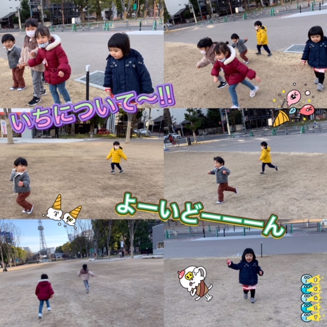 お昼寝後のお散歩ではみんなで公園に🌟😉