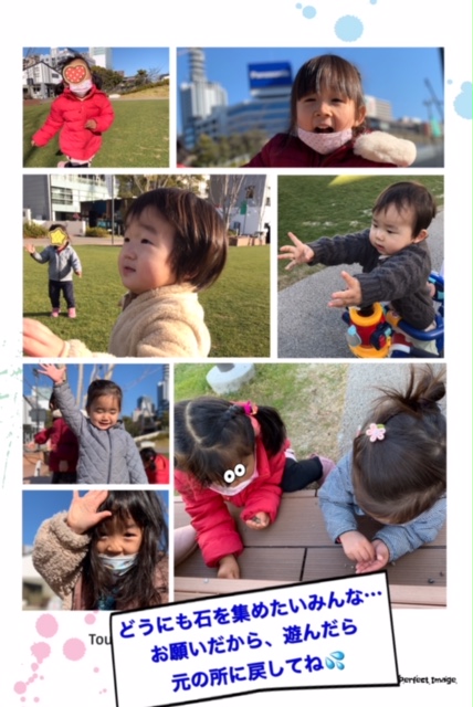 ポカポカお散歩日和 2021.10.132021.01.21 今日は暖かかったね〜‼️ いつもにように順番こにお散歩❣️ 石を集めておままごとする異年齢女子達。 スヌーピーさんにご挨拶に行った男子ちびず。 みんないっぱい動いてお日様浴びたせいか、 ご飯を食べたらパタンでした〜😴