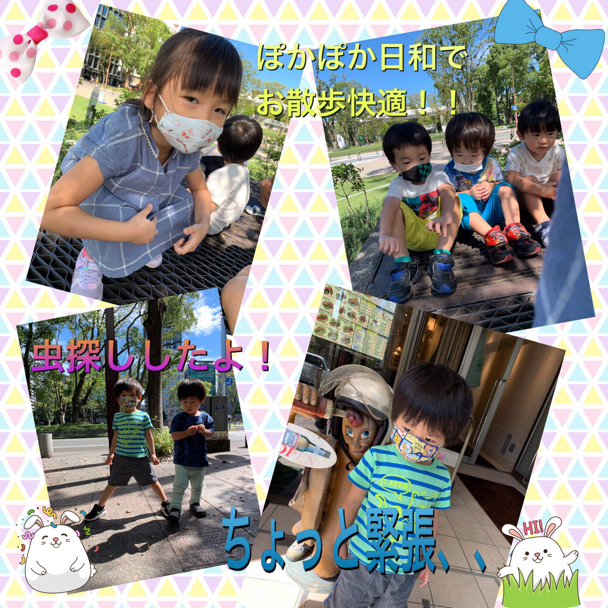 Untitled Post 2021.10.132021.09.19 今日は少し暑かったね💦 疲れた〜と言いながらも、元気いっぱい走り回っていました🏃♀️ みんなで追いかっけこした際は、追いつかないと拗ねてしまう場面もありましたが、 お姉さんが迎えに来てくれて笑顔が戻っていました‼️ 小さい子は虫に夢中でずーーーーとアリンコさんを探していました🐜 見つかると捕まえようと小さい手で摘んでいましたが、潰れてしまいそうでした💦