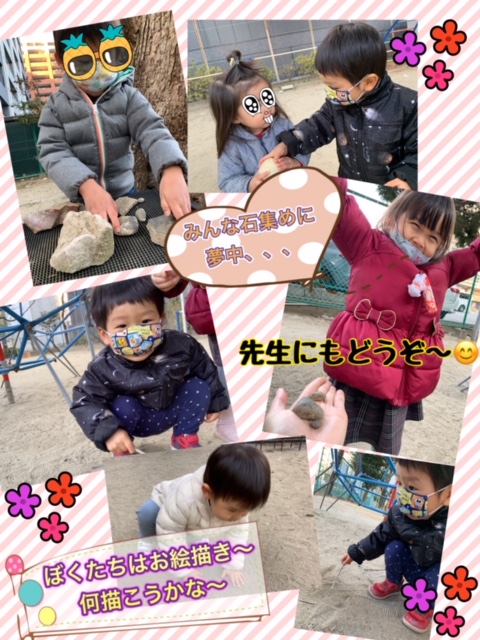 Untitled Post 2021.10.132021.01.15 みんなでお散歩にいくために上着をきたり靴下を履いたり準備をしているときから 「公園で滑り台したーい‼️」「オアシスに行きたいたーい😊」「芝生で遊ぼ〜‼️」と それぞれみんな意思はバラバラ、、、😓今日は公園に行きましたがせっかく公園にきても みんな遊具で遊ばずお砂でお絵描きをしたり石集めをしたり、、、 どこに行っても結局みんなで楽しく遊べるもんね🌟😉