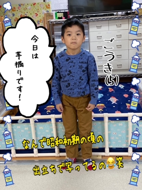 君は賢い!! 2021.10.132020.11.12 今日は通ってる幼稚園で芋掘り🍠をする予定のごうちゃん🙄 先生から汚れても良い服を着てくるように言われたので『土は茶色だから、このズボンなら汚れても目立たないよね‼️』と自分で洋服をセットアップ👕 ももさんの返事は当然のごとく「目一杯!掘ってきて。アップル🍎の子どもの分もだよー」とごうちゃんに指令を出しました😊 が… 芋が小さすぎて園で食べる分しか無かったそうです😂 芋ざんまいの献立が…😂笑 当てが外れちゃったなぁ🤷♂️