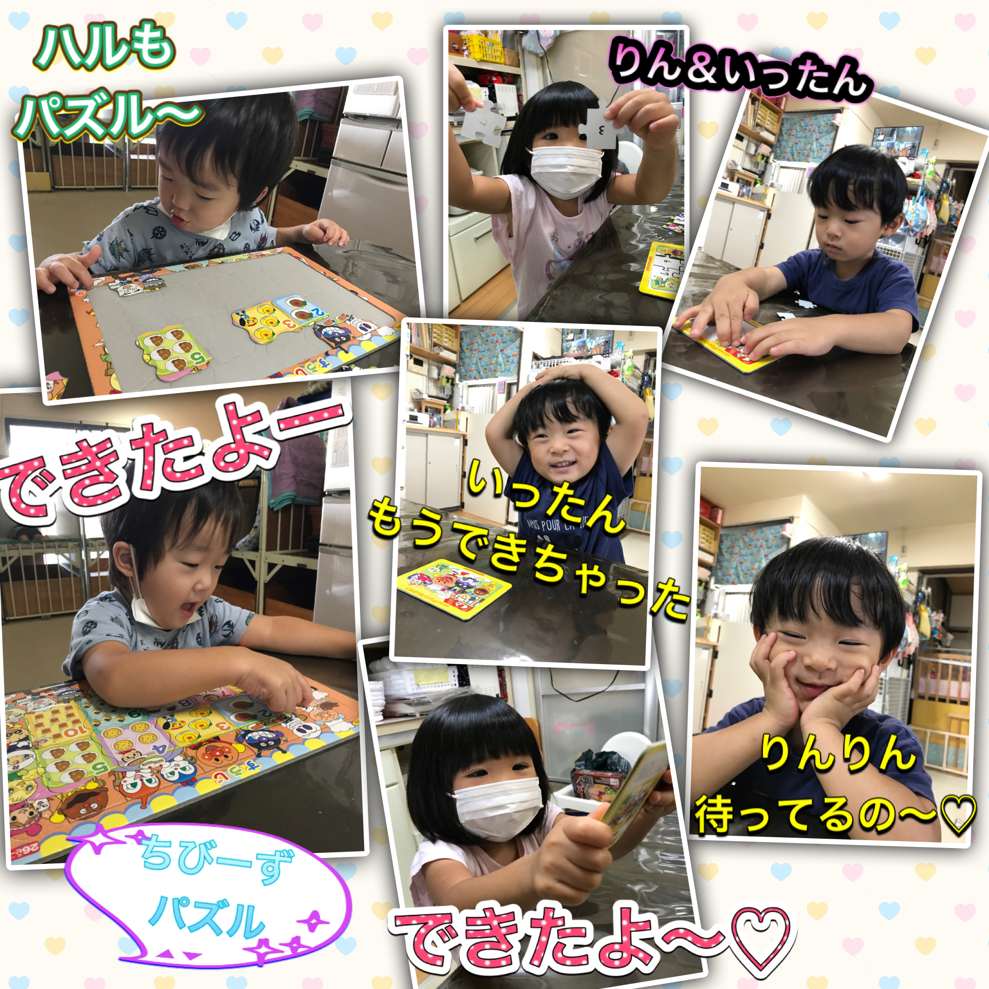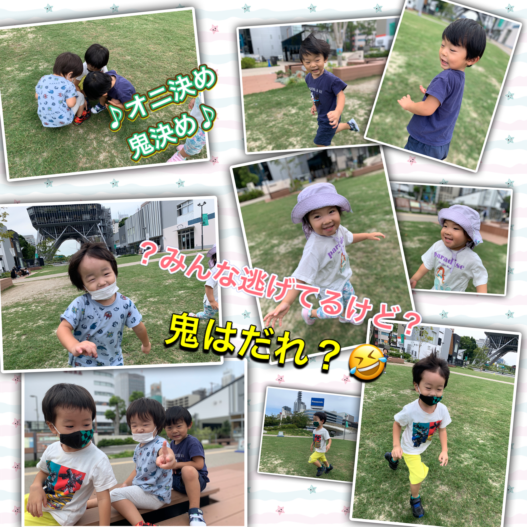 Untitled Post 2021.10.132021.09.13 午前中の異年齢さんお散歩は 久しぶりの芝生広場! ♪オニ決め〜オニ決め〜♪……と、お兄さん達の真似っこで オニ決めしてたけど、 結局みんなキャー♡って走り出しちゃった🤣 鬼はだれなんだい? 久しぶりにいっぱい走れて楽しかったようです😊 お昼寝明けのお部屋組はパズルタイム‼️ ごうきVSいぶきや、ちびーず達もパズルが上手になったね〜❣️