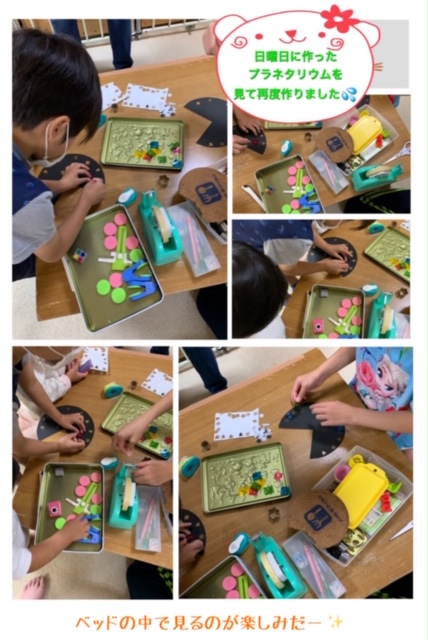 作ってわくわく⁉️🙄✨ 2021.10.132020.07.04 いつもお散歩です身体を動かしてますが今は梅雨時… お部屋で遊べることもしなくちゃねってことで、もうすぐ七夕に合わせて簡単にプラネタリウムを使っちゃいました🌃 ハサミや穴あけキリなど危ない工具も使うので少し大きめの子向けですが、完成した後にスマホのライトを下から当ててみるとなかなかキレイに😳 オリジナルの星座作ってましたよ🙆♂️