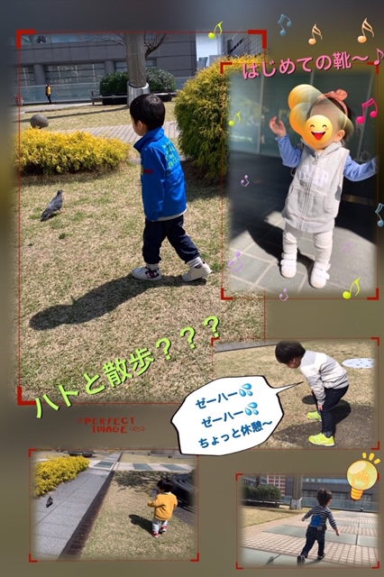 今日もいいお天気☀️ 2021.10.132020.04.07 絶好のお散歩日和でした😊 静かなオアシスでは、ハトもゆったり???🦆 ハトと一緒にお散歩しちゃったね😊 はしゃぎすぎて疲れちゃったお友達も🥵 ベビーちゃんは初めて靴を履いてあんよ♪👣 上手に歩けてご機嫌さんでした😊 またゆっくりお散歩しようね😊