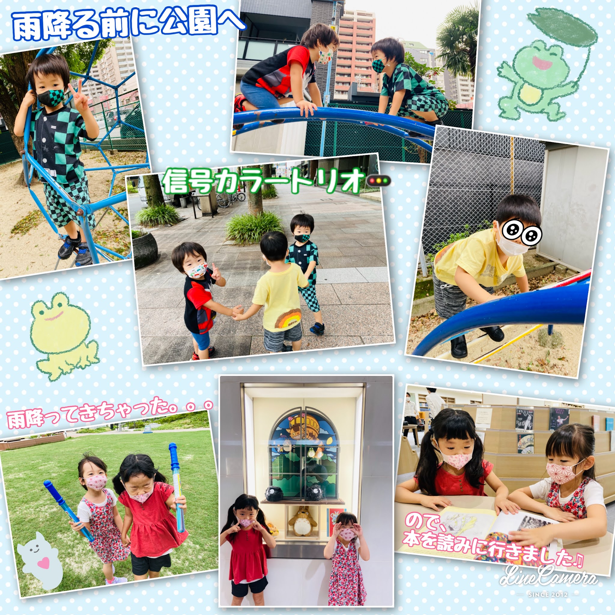 今日の午前の最初のお散歩はまだ雨が降っていなかったので、信号カラートリオ🚥としょうちゃん公園へ行きました😊✨
