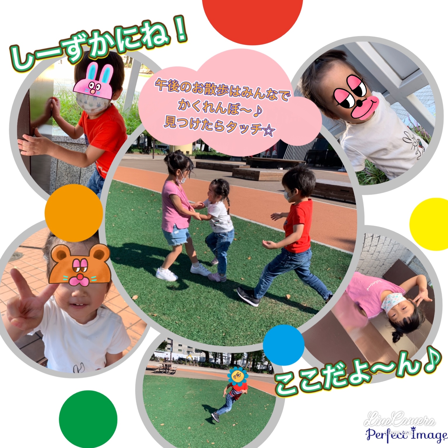 Untitled Post 2021.10.132021.09.06 今日の午前中のお散歩は男の子揃って♪ 近くの芝生が養成中だったので反対側まで みんなでいってきました〜😈👍🏻 3歳4歳さんが揃ってのメンバーで鬼ごっこを スタートしましたがみんなタッチが強め💦 「タッチーーーー!🔥」と言いながらパンチの勢いで お友達を追いかけてタッチしていました🤣🤣 それでもみんなニコニコと楽しそう♪😂 午後のお散歩は塔を使ってかくれんぼ😊 久しぶりに午前も午後もいいお天気で お外で元気いっぱい遊べました❣️😄