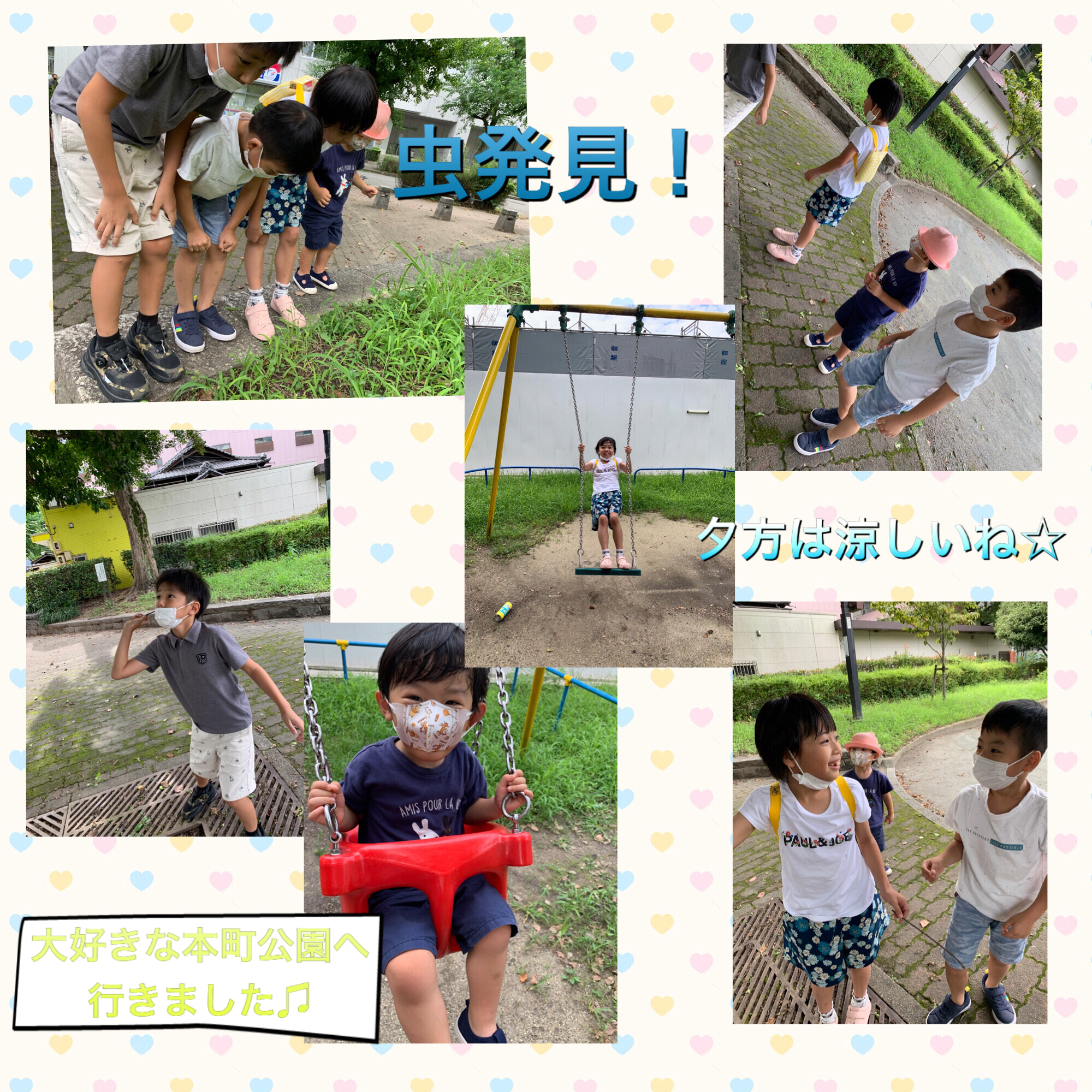 お散歩日和♪ 2021.10.132021.09.05 雨が続いていましたが、今日はお日さまが出てくれて晴れました☀️ 夏が戻ってきたくらい暑く、お散歩に出れば汗をかいていました💦 午前中は芝生の広場へ行き、遊びに来ていた小さいお友達と一緒にボールで遊びました😊 お友達のお母さんから「遊んでくれてありがとう」とお礼を言われると、アップル園のお兄さん達はドヤ顔‼️ 褒められちゃったね☆ 午後からのお散歩グループは本町公園へ行き、遊具や虫観察に夢中になっていました♪ 今日も賑やかなアップル園でした😁
