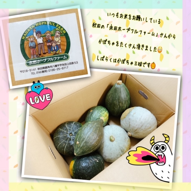 嬉しい頂き物🎃ありがとうございます😊 2021.10.132019.11.30 午前お午後もオアシスの通称•お山で走り回ったね🏃♂️🏃♀️💨 かけっこ、鬼ごっこ! ぜーんぜん寒くないって!!!! 大人は寒いんだけどなー🥶笑 ハイチーズの瞬間に靴が脱げちゃったごうちゃん(笑) 味のある写真になりました笑 いつもお米をお願いしている秋田の「永田ホープフルファーム」さんからかぼちゃをたくさんいただきました😳 種類の違うかぼちゃが入ってましたよ🎃 しばらく、ごはんが黄色くなりますね😳