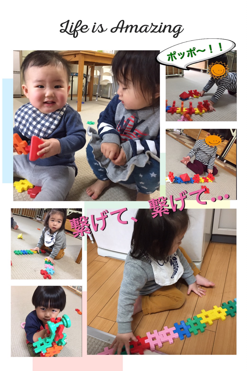 ハイハイ組の子もお兄さん達がいない分、ブロックもいつもより多く使えます(笑)