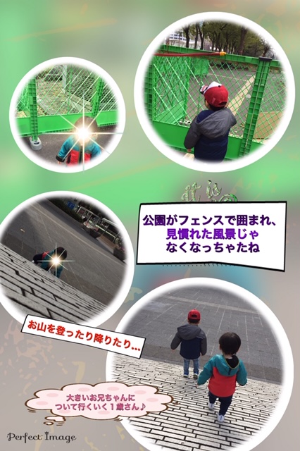 …と歩き出すと、整備が始まった公園にフェンスが🚧🚧🚧!