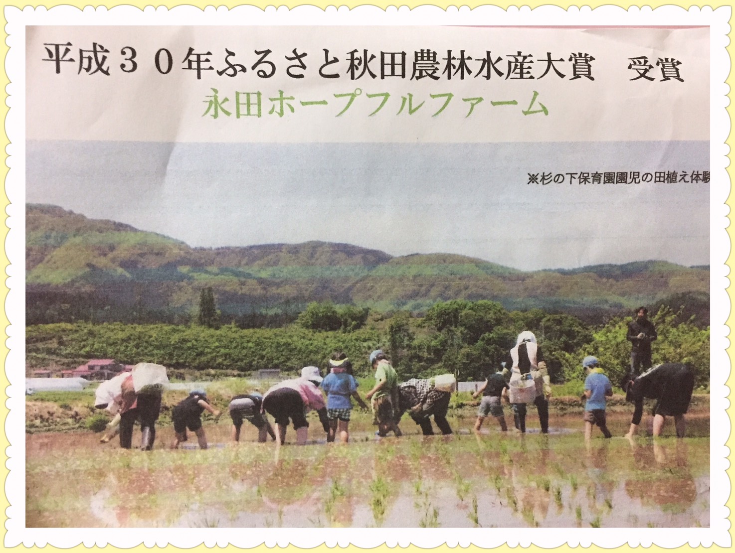 いつもお世話になっている、その生産先の「永田ホープフルファームさん」のお米が、「平成30年ふるさと秋田農林水産大賞」を受賞したそうです‼️😊👏