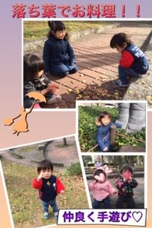 お鼻を真っ赤にして、落ち葉や木の実で遊んでいました😆