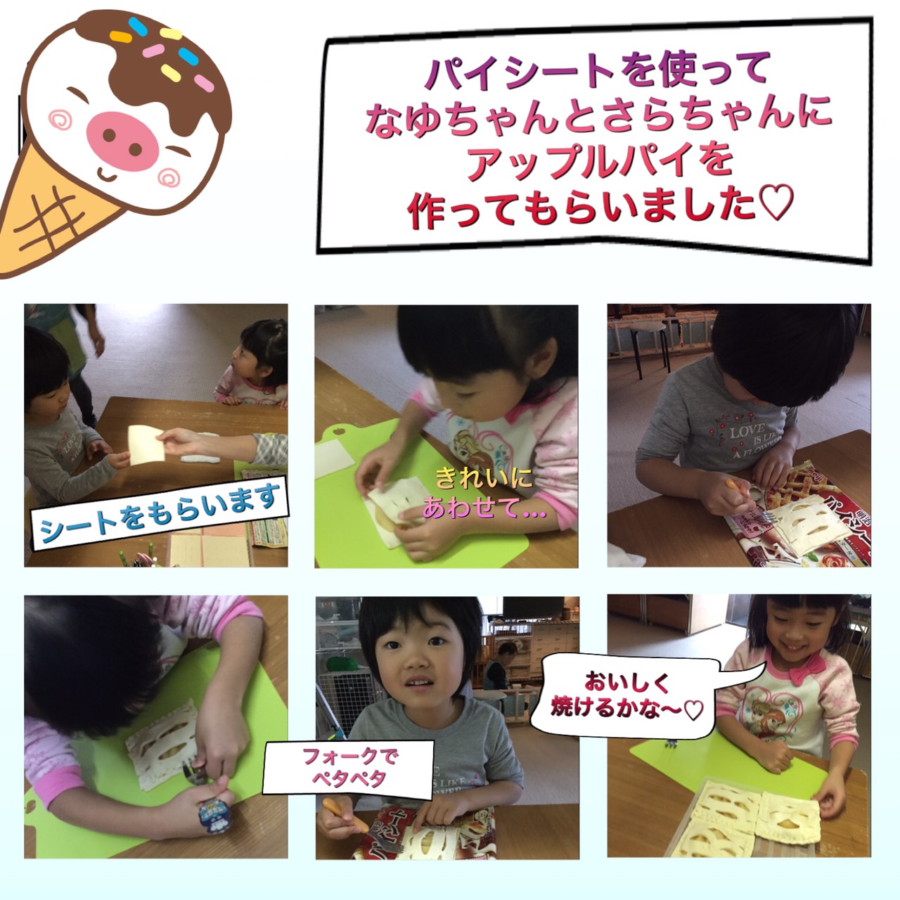 今日は、なゆちゃんとさらちゃんにアップルパイを作ってもらいました😀🍎