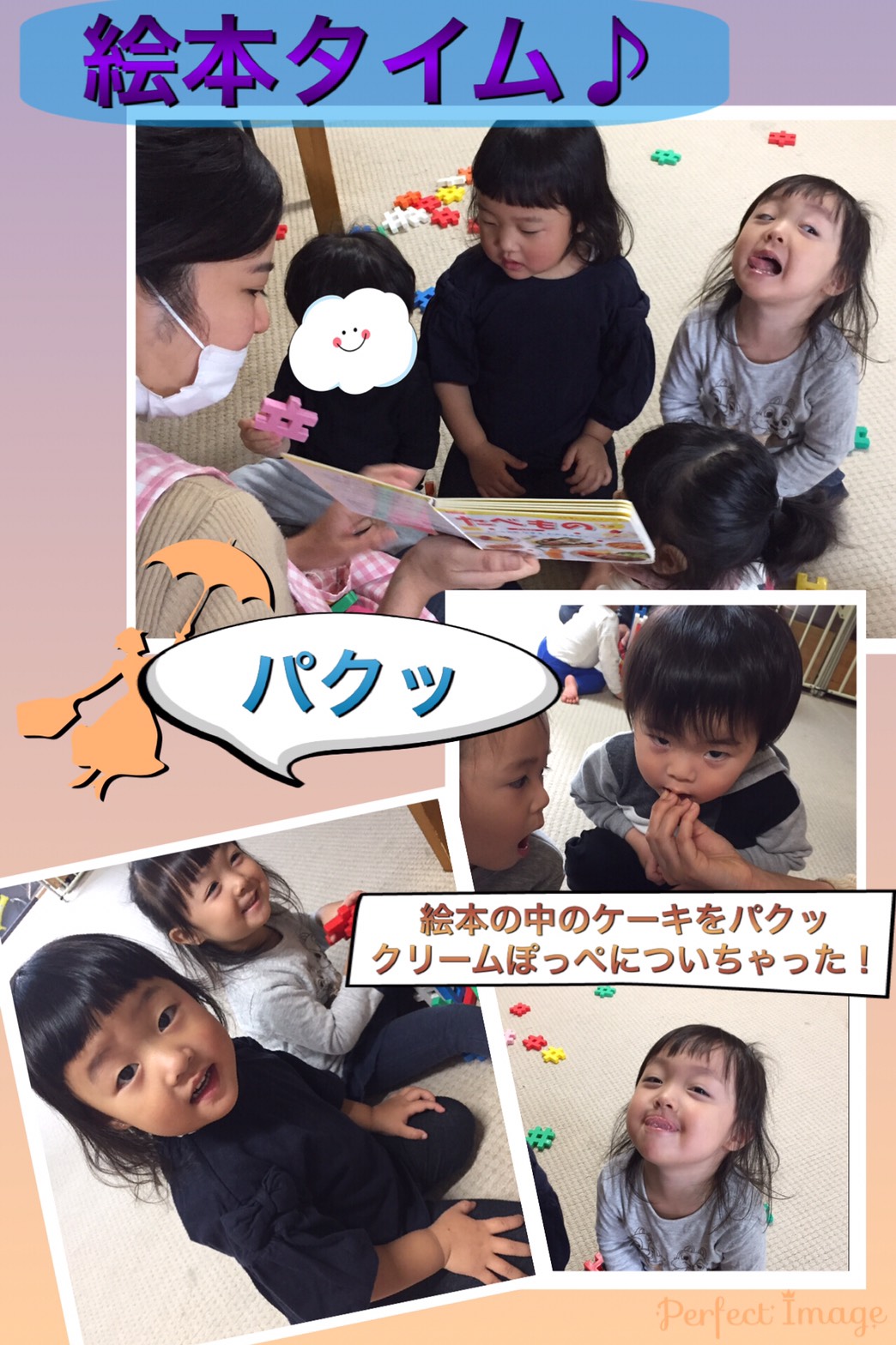 絵本タイムでは、食べ物や動物の絵本に興味津々♡