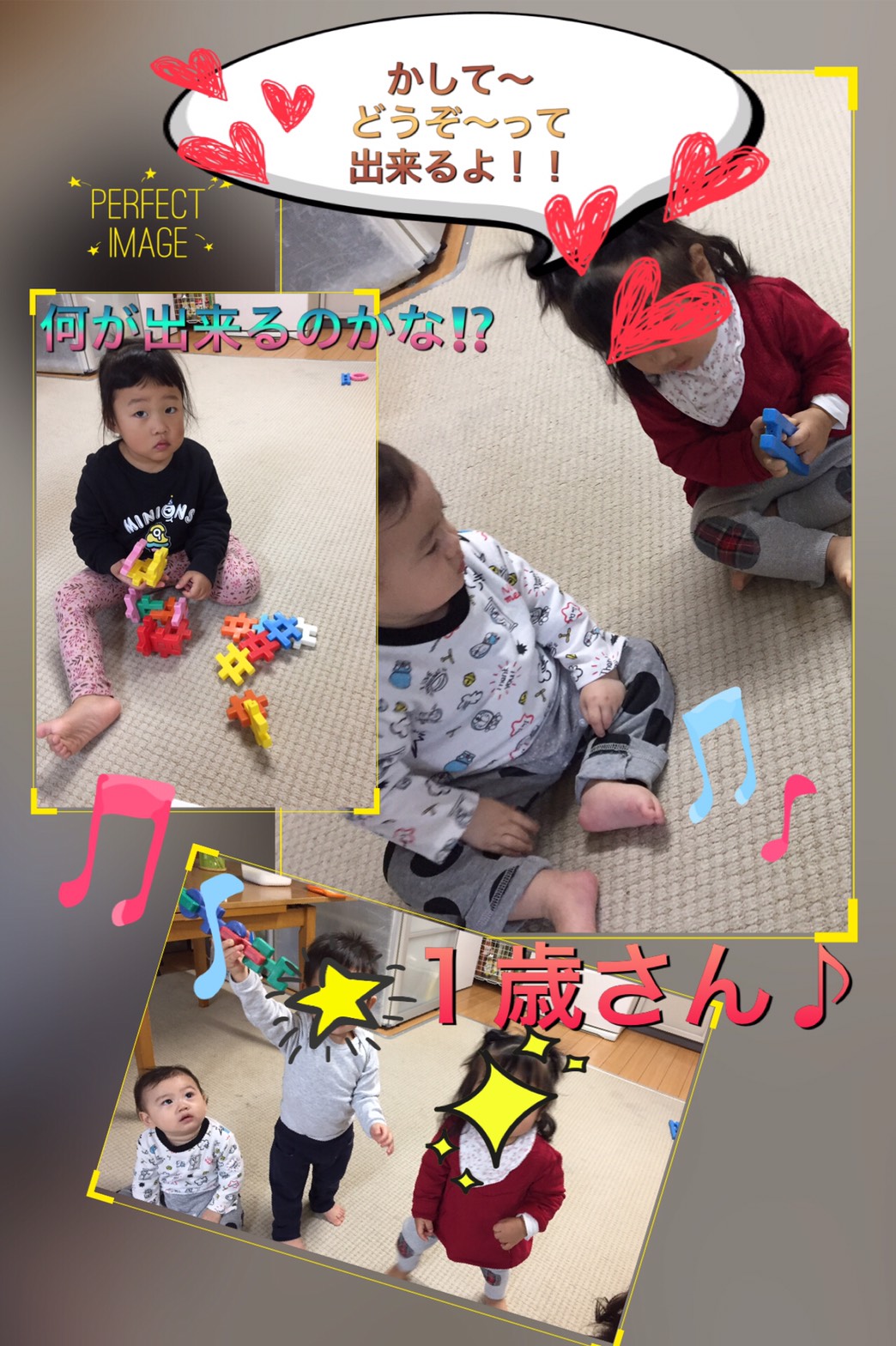 上手にできました👏 2021.10.132018.11.22 1歳さんは、おもちゃの貸し借りが上手😀 「は〜い☺️」や 「どうぞ☺️」、「ありがとう🙏」が流行っています♡ お友達と楽しいね‼️ 午後は児童館に行きました🚗🌬 お姉さんにブロックでお家をつくってもらって、その中で仲良く遊んでいました♪ あ〜楽しかったーー🤤 11/22のごはん↓ 🆕鮭の味噌バター焼き 🆕ミートポテト 🆕ナスとパプリカの甘酢炒め ☆ごはん🍚 ☆りんご🍎