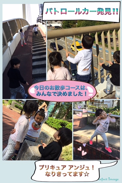 今日の3歳組さんのお散歩コースは、みんなで話し合って決めました♪