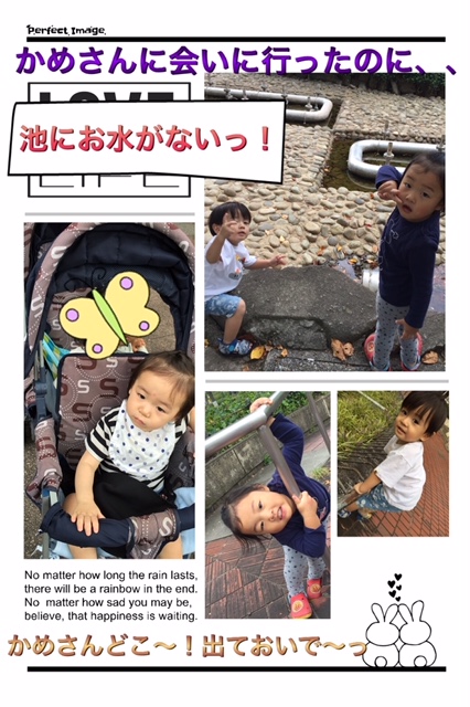 今日のお散歩〜♬ 2021.10.132018.10.10 こうきくんが「かめさん🐢見に行くー!」と、はりきって出発したものの… 池に着いてみると、水がない‼️💦 残念😂 諦めきれないこうきくんは、みんなでかめさんを探しに行く事に😃 しかし、歩いているうちにかめさんを忘れてしまったのか、お友達とおままごとを楽しんでいました♡ みんな付き合ってくれてありがとーー😊😊 かめさん何処へお引越ししたのかな〜🐢🤔 10/10のごはん↓ ☆ハンバーグ ☆マカロニサラダ 🆕豚バラ肉と野菜、厚揚げのあんかけ ☆ごはん🍚 ☆みかん🍊