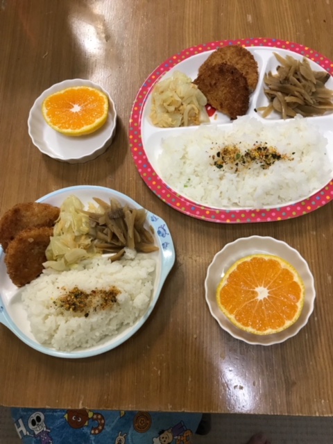 小さいけど、お兄さんお姉さん😊 2021.10.132018.10.05 今日のお散歩では、こうきくん、りりいちゃんが、年下の子の面倒を見てくれました😃 手を繋いでくれて、こっち行くよーと、すっかりお兄さんお姉さん(音符) ベビーカー組さんもニコニコでした♡ 10/5のごはん↓ ☆ミートコロッケ ☆牛肉ゴボウ ☆🆕とりからごま油キャベツの チキンラーメン和え ☆ごはん🍚 ☆オレンジ