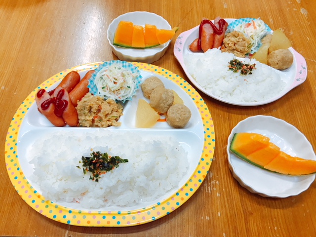 奮闘中です💪😅 2021.10.132018.08.01 夏休み中なので、アップル園はとても賑やかです‼️ その賑やかしのメインは…ちょっと大きいお兄さんやお姉さん🙄 お姉さん、お兄さん達がお手伝いをしてくれたり、小さい子と遊んでくれたり😄 でも、たまにいじわるして怒られたり、、、💦 もちろんお勉強も頑張ってね✌️ 8/1のごはん↓ ☆ボイルウィンナー ☆鶏団子と冬瓜の煮物 ☆卯の花 ☆春雨サラダ ☆ごはん🍚 ☆メロン🍈