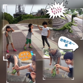 午後散歩では、大きい子たちが「恐竜」を発見⁉️