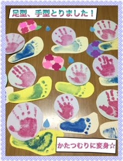 今日は雨でした☔️ 2021.10.132018.05.31 もうすぐ梅雨ですね〜🐸 室内で過ごす日も多くなるのかな!? 元気いっぱいの子どもたちをどう発散させるか🤔 手型と足型を取って、カタツムリに変身させました☆ 午後は児童館に出かけました😊 メンテナンス中だったおもちゃが戻ってたり、新しいおもちゃが増えたりで、ワクワクしたね〜! みんな仲良く、そして大切に使って遊んで来ました🙃