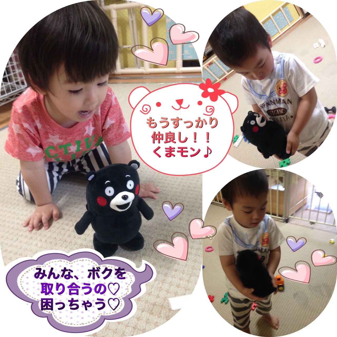 新参者も…😳 2021.10.132018.04.26 4月に入り新しいお友達も少しづつ増えて慣れてきましたかね?🤔 先日の旅行で、アップル園の新しいお友達になったくまモンは大人気です🙄 こちらが喋ったことをおうむ返ししてくれるのですが、仲良しを超えて奪い合いが…😅 仲良くなる頃には壊れてないといいなー笑笑 4/26のごはん↓ ☆青椒肉絲 ☆焼きそば ☆ホタテ、大根と人参のクリーム煮 ☆小松菜おかか和え ☆ごはん🍚 ☆バナナ🍌
