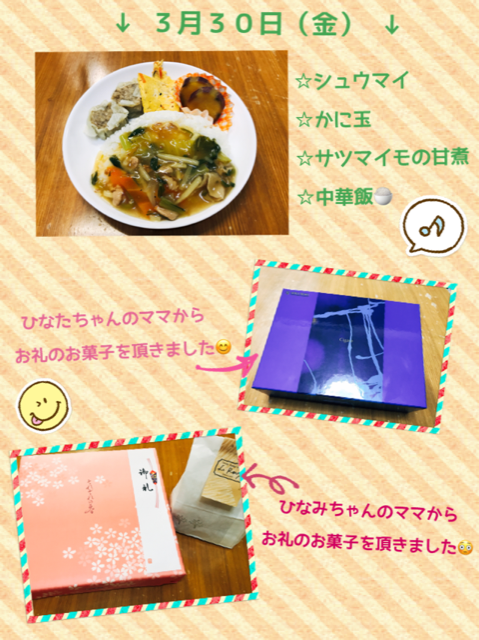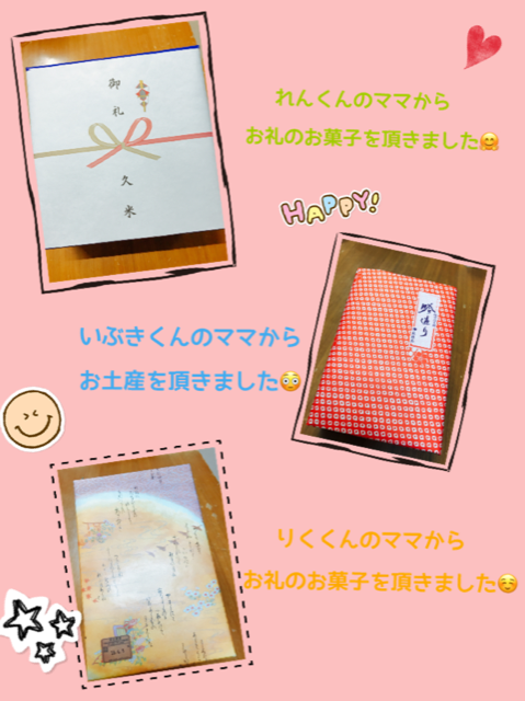 新年度からは… 2021.10.132018.04.02 また平日は毎日ブログをアップしていきたいと思ってます☺️ 卒園にあたり、たくさんのママからお礼のお菓子を頂きました😭 みなさん、ありがとうございました😢 保育園、幼稚園、小学校🏫みんながんばるんだよー😍