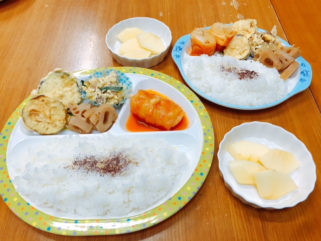 早速ありがとうございます😊 2021.10.132018.03.10 先日、保育園、幼稚園に入園する女の子の髪の毛をお家で結ってくるを練習して下さいとお願いしたら早速可愛く結ってきてくれました😍 みんなかわいあ😍 ありがとうございます😊 継続出来るよう頑張ってください💪 3/9のごはん↓ ☆ロールキャベツ ☆ナスの天ぷら ☆蓮根土佐煮 ☆もやし、ニラの卵炒め ☆ごはん🍚 ☆りんご🍎