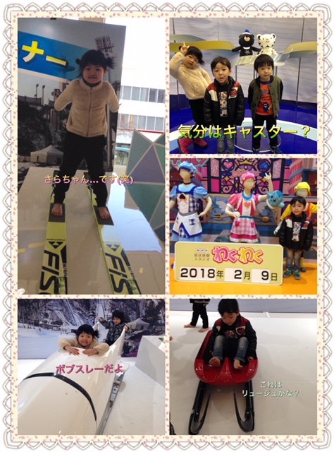 キャスターが立つ場所と同じセットがあったり、実際にスキージャンプの板や、ボブスレーに乗れるブースや、ミニカーリング体験が出来る所もありました😊