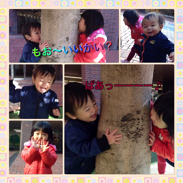 こうちゃんとひなみちゃんはセントラルパークの真ん中にある広場のところで2人でかくれんぼ を始めました♪
