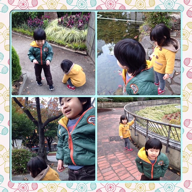 別働隊のしょうごくん、ゆいちゃんは、池で泳ぐ鯉に夢中🐟