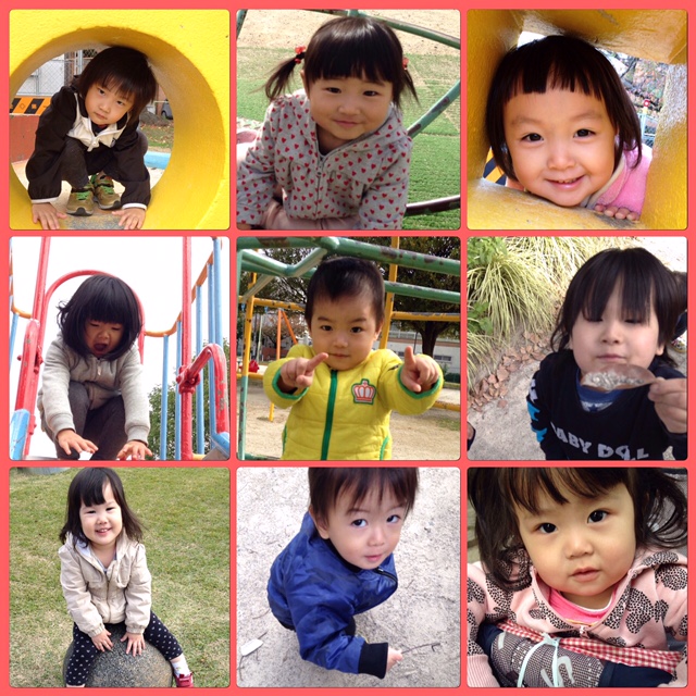 お初の遊具に慎重になるごうちゃん、れんくん、ひなちゃんとは真逆に、さらちゃん、りいちゃんは好奇心いっぱい‼️