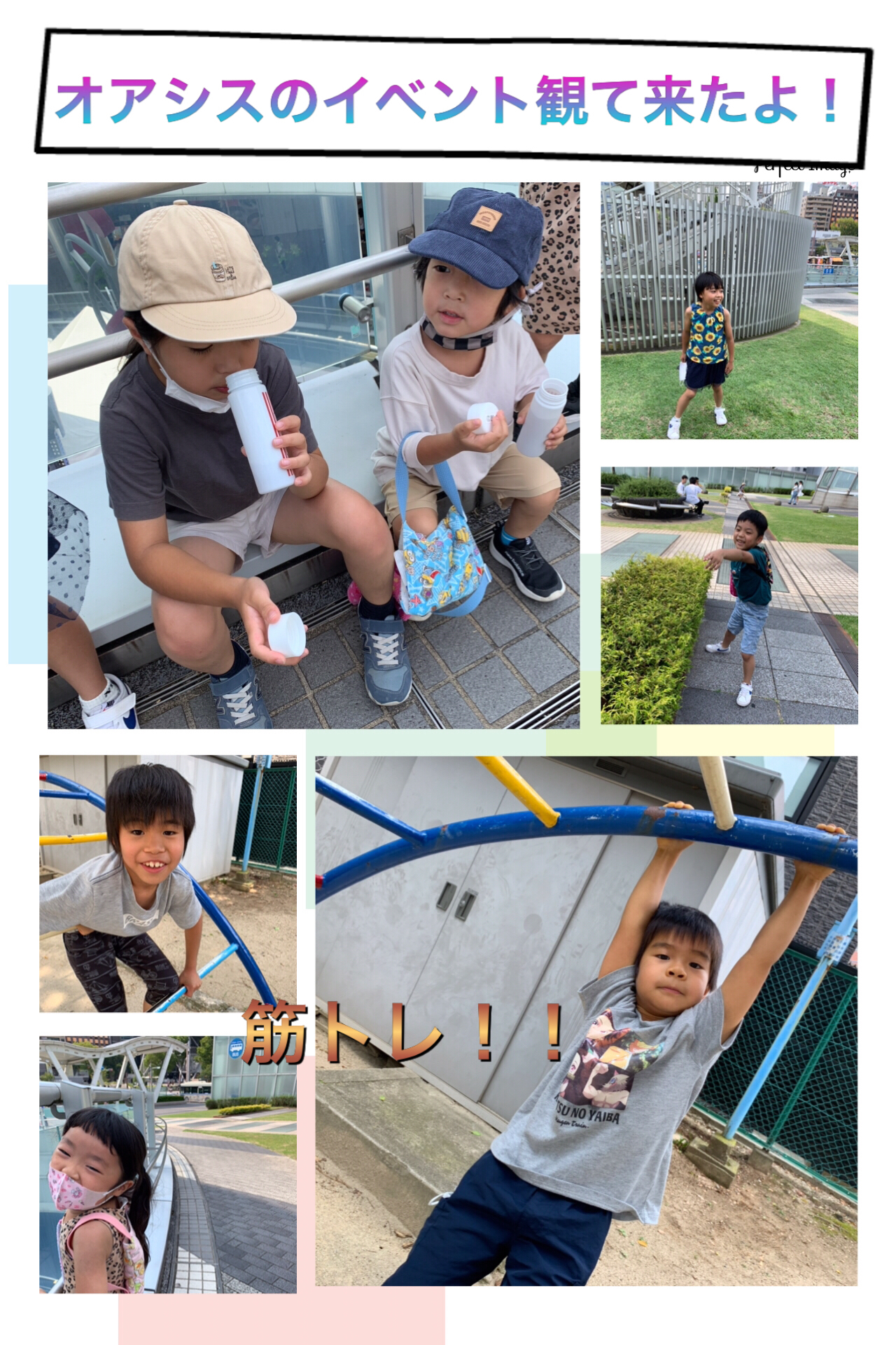 大きい子グループはみんなでおにごっこをしていました👹風も少し吹いていたので快適に遊べました✌️オアシスでイベントもやっていたので覗いてきました♪うちわのお土産ももらって嬉しかったね😊