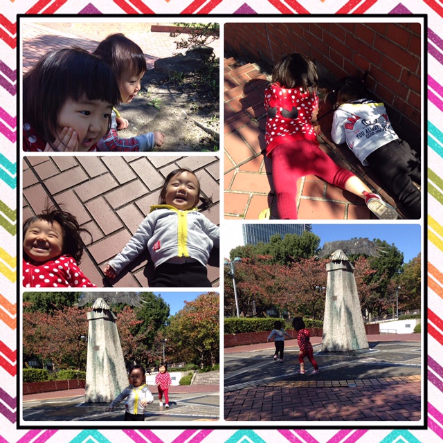 こうきくんは、自分の影に夢中になり、エイッ!と、足で踏んで追いかけていました😀