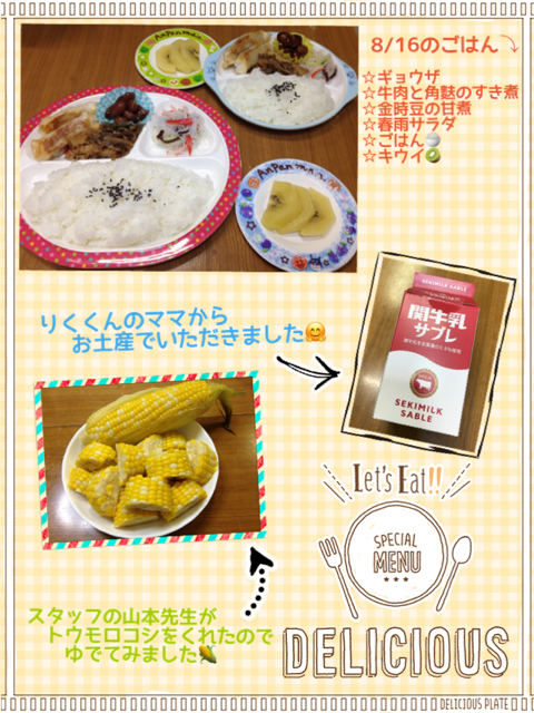 ブログ再開します😄 2021.10.132017.08.16 お盆中、お休みさせていただいたブログですが、今日からまた再開いたします〜♪ ブログはお休みでしたが、お盆中も登園してきたお友達と 通常どおりお散歩にいってましたよー😉 今日はお休み中の様子の写真と、今日1歳のお誕生日を迎えた、いぶきくんママからお裾分けを頂いたのでそちらを載せますね〜‼️ 早速おやつにいただきました💖 みんなの美味しい顔も一緒にパチリ📸 いぶきくんママ、ありがとうございます😍 いぶきくん、このお餅背負って歩けた(立てた)のかな? これからの成長が楽しみです!!