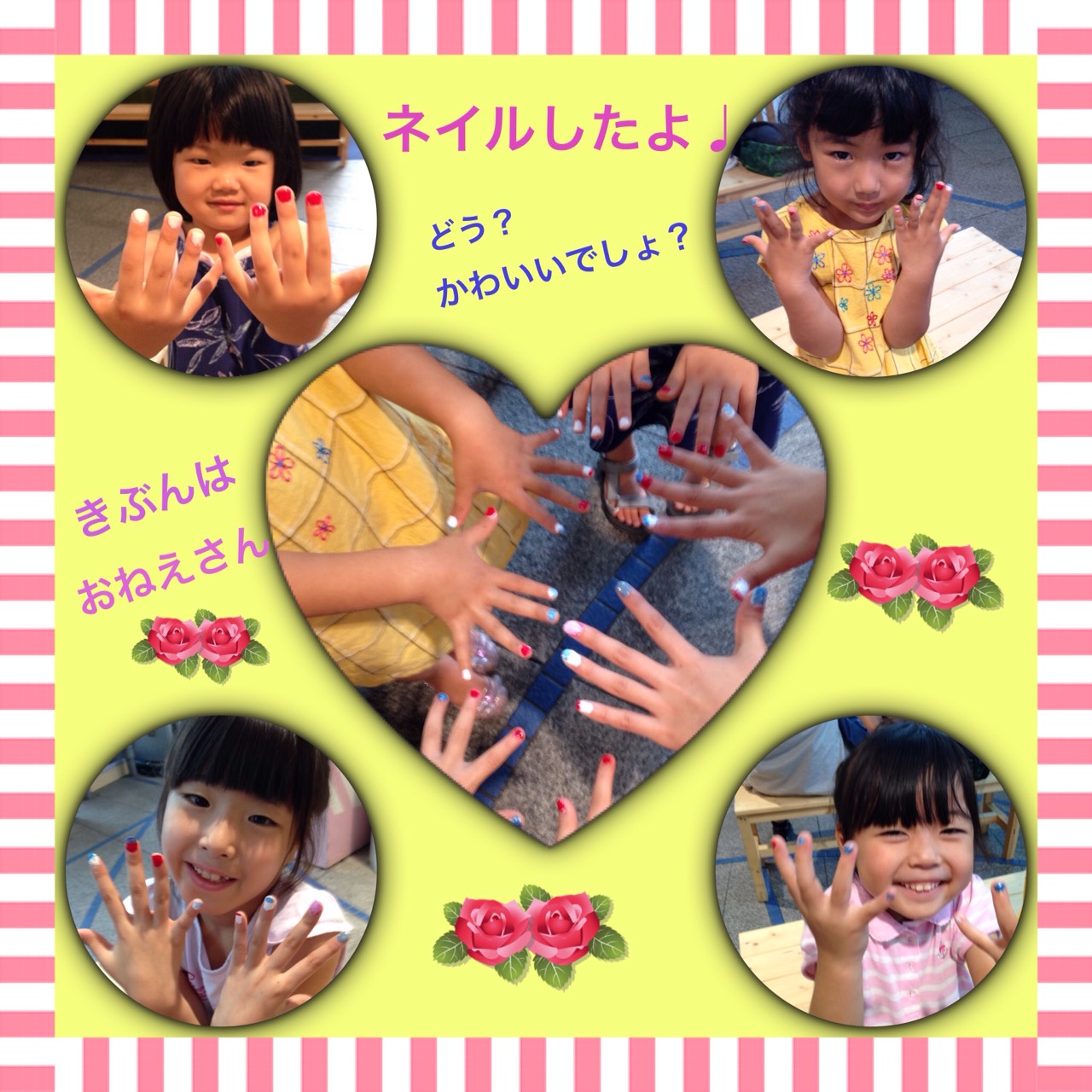 4歳児3人は、先生に手伝ってもらって素敵なネイルができ、アップル園に戻って来てからは、なんだかいつもよりお姉さん気分(笑)