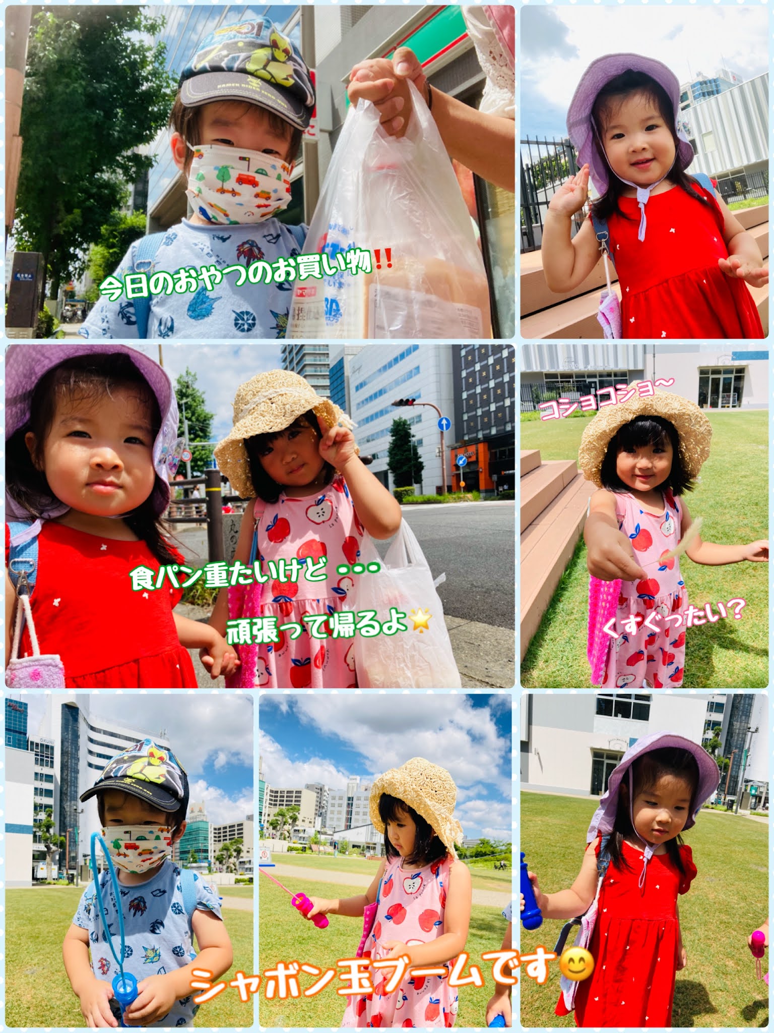 シャボン玉遊びしてお茶飲んだ後、もも先生からのお使いで食パン🍞を買いに行ってきました