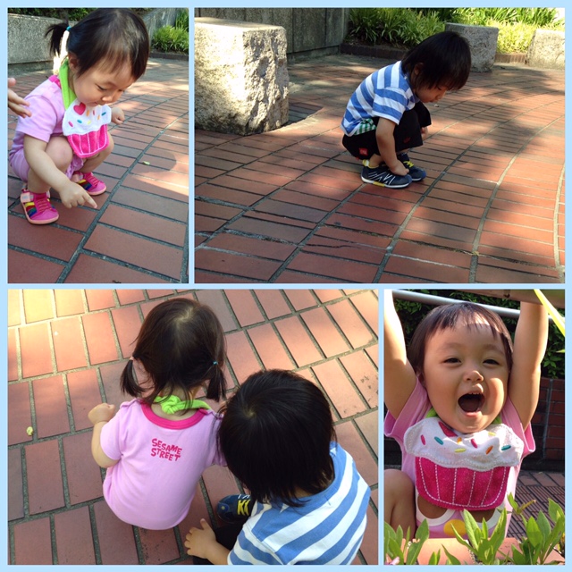 というわけで2組に分かれてお散歩に行ってきましたが、れんくんとりりぃちゃんの小さい組は暑いのにわざわざアリの観察を熱心にしておりました😳